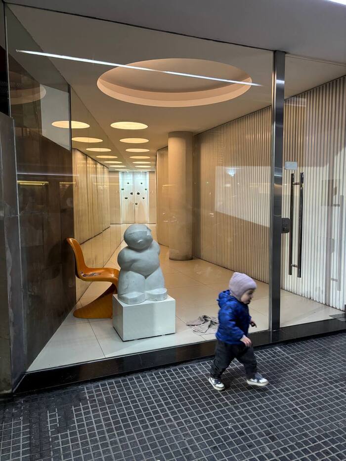 А тут арт целый на входе со стулом и скульптурой. Как они это придумывают?