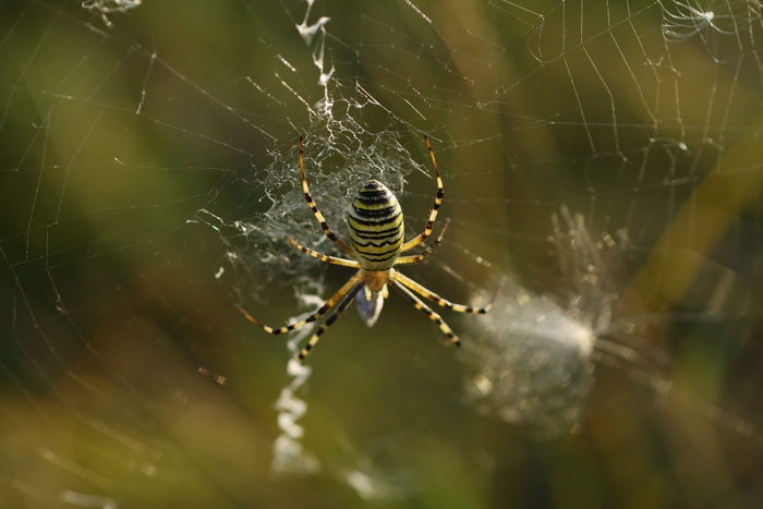 Паутина. Она у аргиопы красивая - круговая, с зигзагообразным узором поперек.