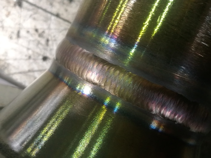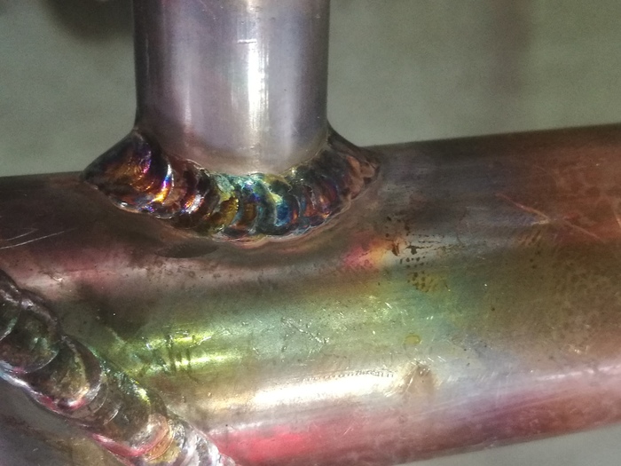 Собираем это всё воедино и варим РАД сваркой, с поддувом, как положено, мыж пищевые продкуты там носить собираемся. Да и прочие жидкие предметы, поэтому делаем с проваром, дабы в непроварахне скапливалась всякая гадость.