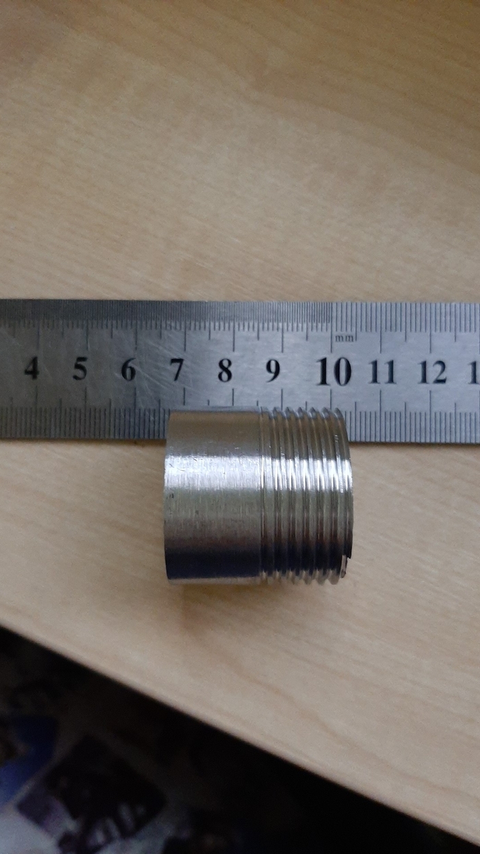 Арматура для заливки в емкость была сделана из дюймового штуцера и пробки, тоже с нержавейки.