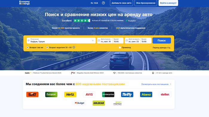 Что нравится — большая база локальных партнёров и аккуратные карточки выдачи: видно, у кого офис ближе к нужному паркингу A/B/C, где короче путь с чемоданами. Приложение хранит ваучер, а лояльность возвращает небольшие проценты — приятно на длинных поездках.