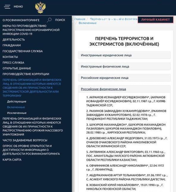 Людям, попавшим в этот список могут заблокировать все финансовые счета, денежные операции они могут осуществлять только на сумму не более 10 тысяч рублей в месяц.