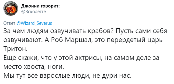 BigFatLory Новая Ариэль 2 года назад Сид Ссылка на безупречное сравнение :D #comment_269693412 @Mr.Blot, спасибо за настроение с утра))) Показать полностью 1 Русалочка Ариэль Комментарии на Пикабу Скриншот Юмор Ещё 0