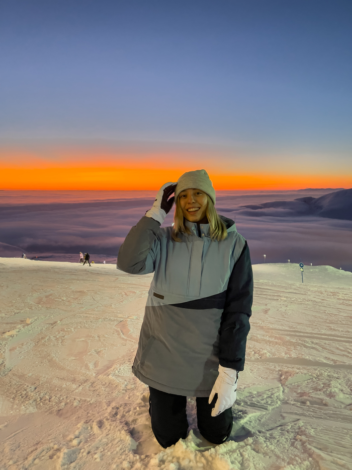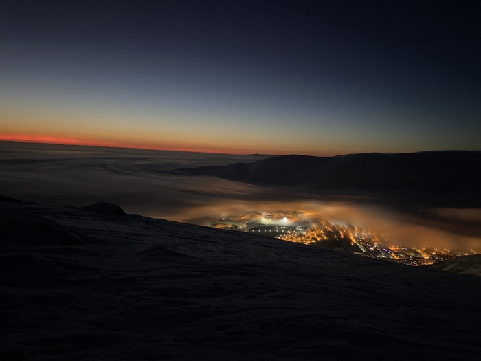 На третий день мы должны были кататься на снегоходах , но наш гид сообщил нам, что на улице низкая облачность и мы ничего не увидим , мол смысла тратить деньги нет. Мы конечно расстроились немного , но вскоре вечером решили подняться на Айкуайвенчорр- так называется гора , на которой находится горнолыжный курорт “BigWood” или «Большой Вудъявр» .