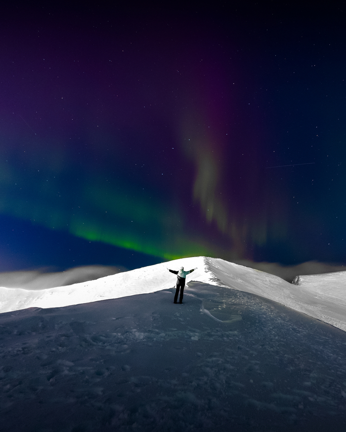 Небо оказалось чистое и ближе к закату мне пришло оповещение о возможном северном сияние в этой местности. Мы, конечно, ни на что не надеялись , но решили испытать удачу.