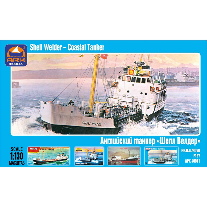 Английский каботажный танкер «Шелл Велдер» - типичный представитель послевоенного поколения судов, предназначенных для перевозки различных жидких грузов. Корабль был построен в 1955 году, а в следующем году начал эксплуатироваться известной компанией «Шелл-Мекс и БП Лтд». В 1973 году танкер «Шелл Велдер» был выведен из эксплуатации, а в 1993 году пошёл на слом. Масштаб 1:130. Ссылка на набор