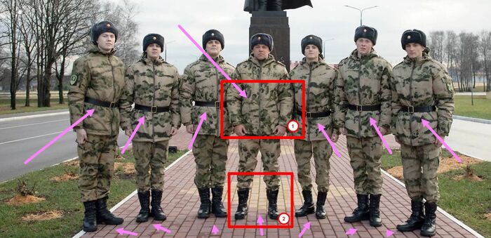 1 - 6 военнослужащих с ремнем, 1 без ремня.