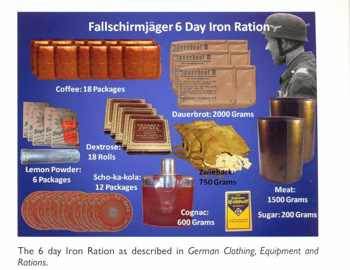 Статья из журнала "Adler" за 1943 год рассказывает о 48-часовом рационе парашютистов: