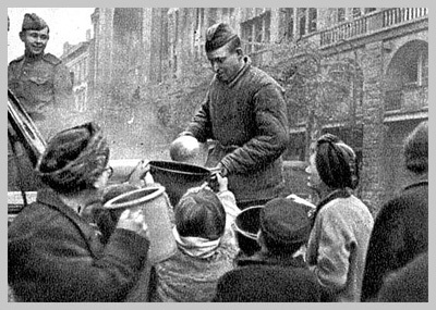 А по-разному. Точнее, как позволяли условия. Если окопы находились под практически постоянным обстрелом противника, то горячее питание доставлялось в термосах, чаще всего, один раз и ночью. Чуть дальше от передовой или во время затишья в боях всегда стремились организовать двух- или трехразовое горячее питание. Сытность или, наоборот, скудность реального рациона питания во многом зависела от условий места. О том, как на самом деле велась борьба с мародерством среди мирного населения, не стоит сейчас судить, но фронтовики отмечают, что, когда шли бои в «богатых» странах, например, Венгрии или Австрии, и официальные заготовки продовольствия шли лучше, и повара явно кое-что «конфисковывали», в итоге солдаты питались более «калорийно».