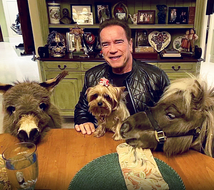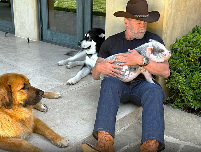Шварценеггер по-прежнему полон сил и энергии, снимается в художественных и документальных фильмах, принимает активное участие в социальных проектах. А еще у Арнольда есть четвероногие друзья: лабрадор Густав, терьер Черри, леонбергер Шницель, маламут Датч, свинка Шнелли, ослица Лулу и пони Виски. Арни души не чает в домашних питомцах и с любовью заботится о них каждый день.