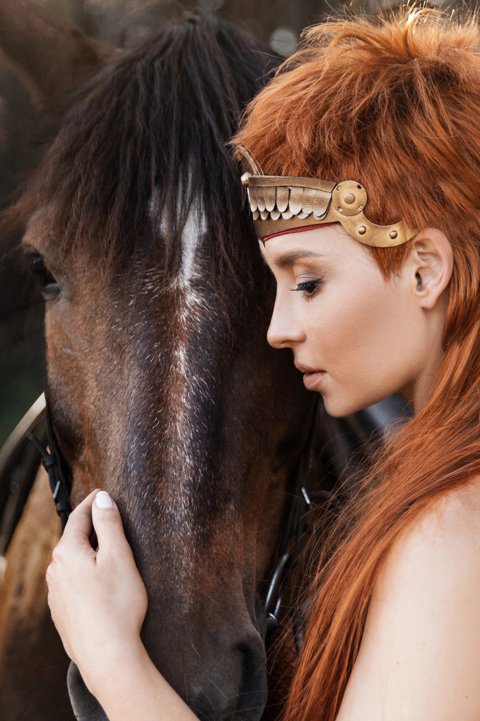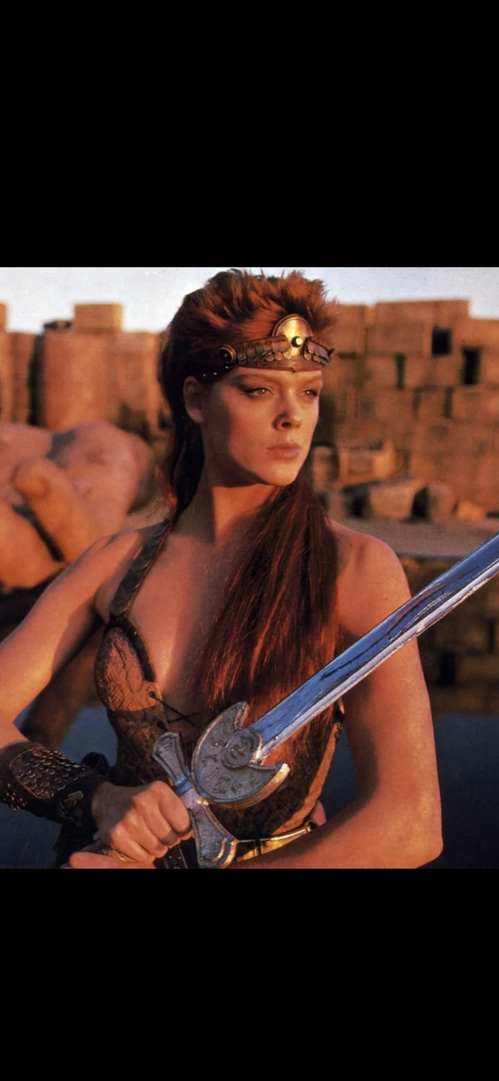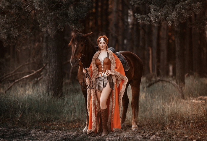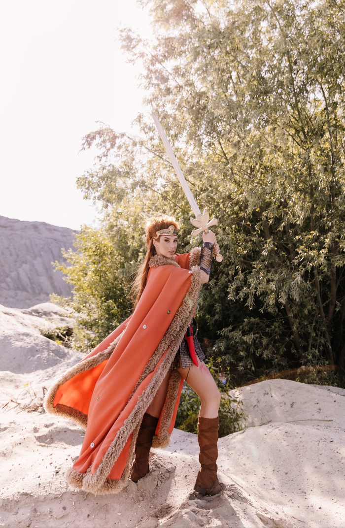 Я давно хотела сделать Рыжую Соню, но самый ее растиражированный образ комиксный, а мне хотелось чего-то другого. Потому я и вспомнила про этот фильм со Шварценеггером и Бриджит Нильсен. По детству мне очень нравились эти приключения, наряду с Конаном -Варваром, Зеной и Гераклом.