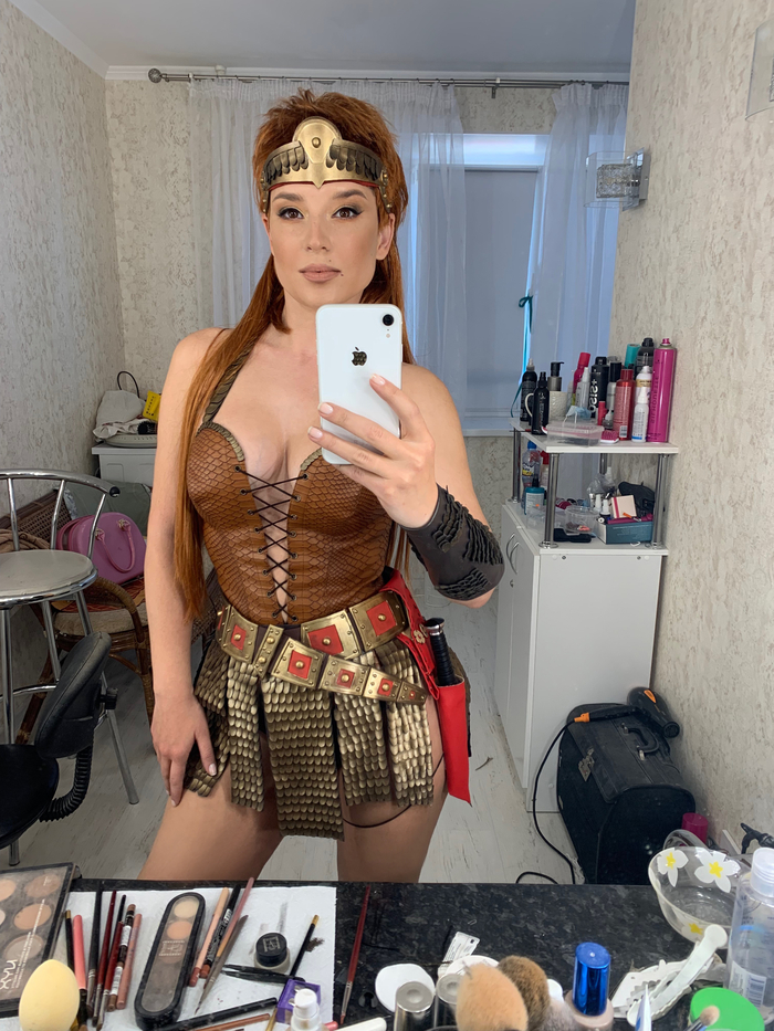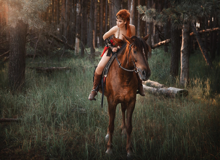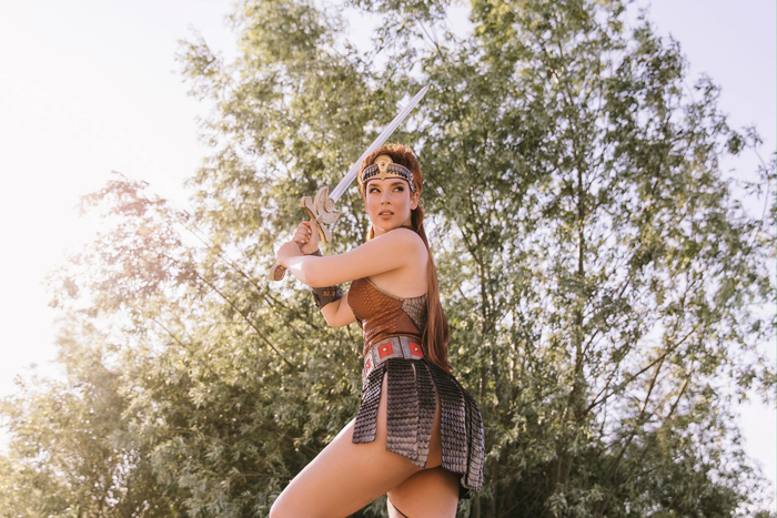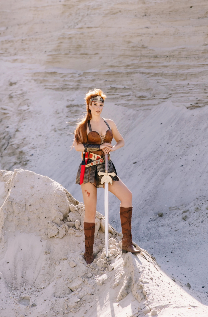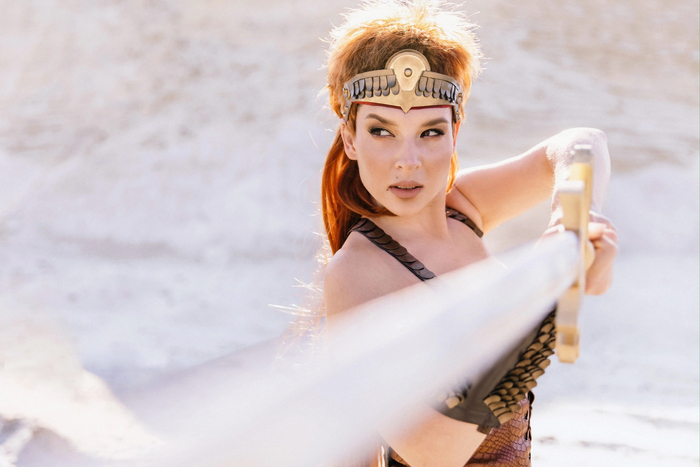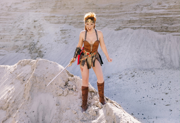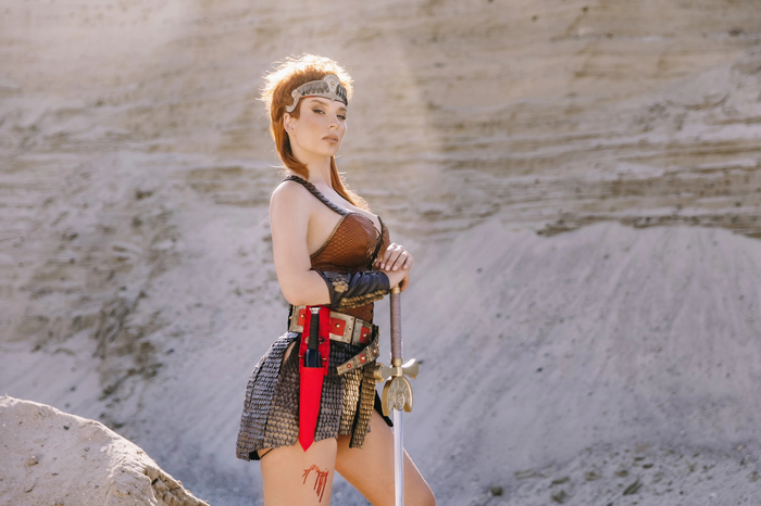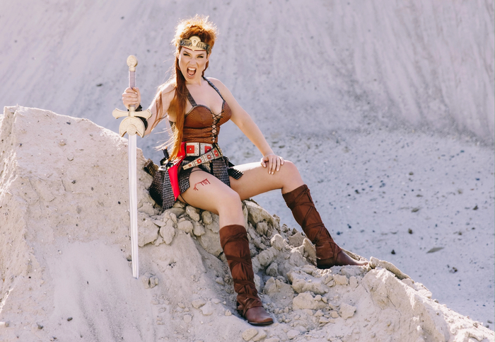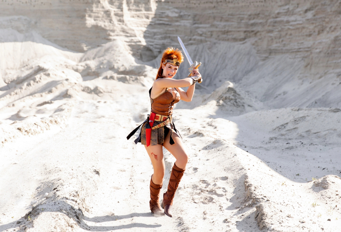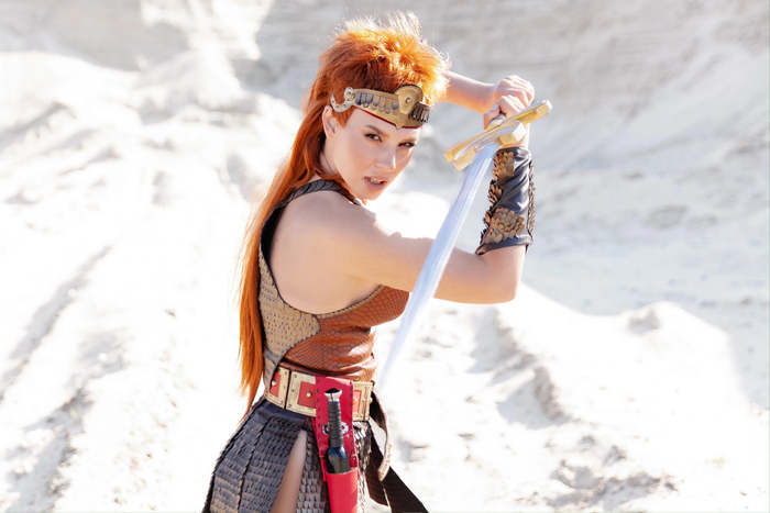 Косплей на Рыжую Соню по фильму со Шварценеггером и Нильсен