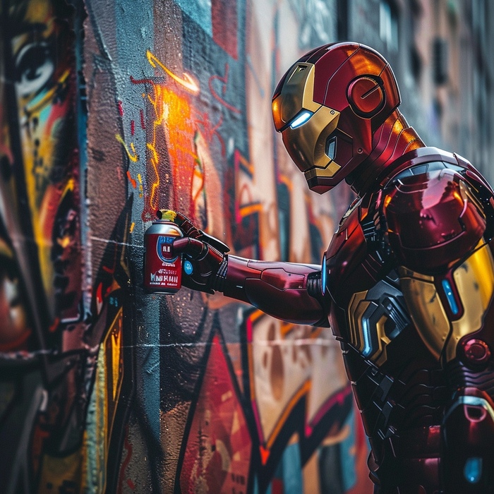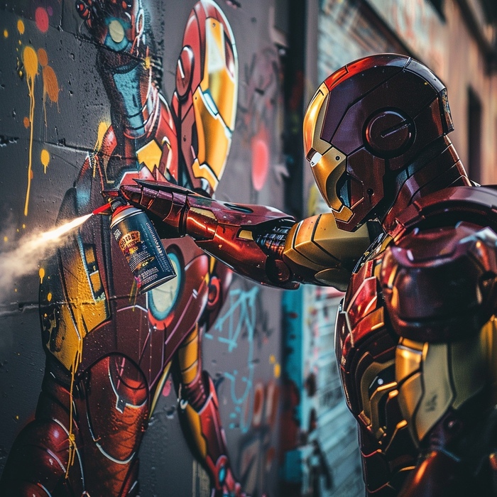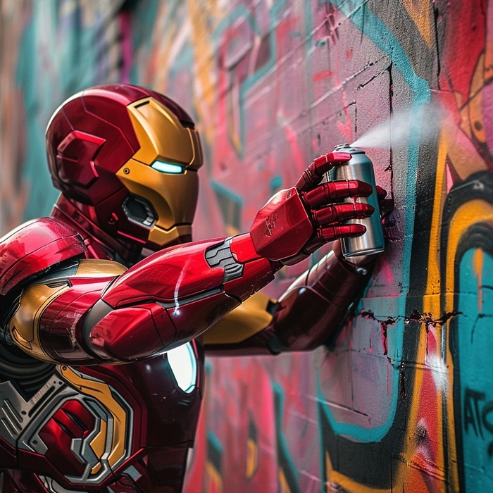 WallArt Арт железный человек рисует граффити на стене 1 год назад Показать полностью 10 [моё] Арт Marvel Железный человек Арты нейросетей Граффити Длиннопост Ещё 0