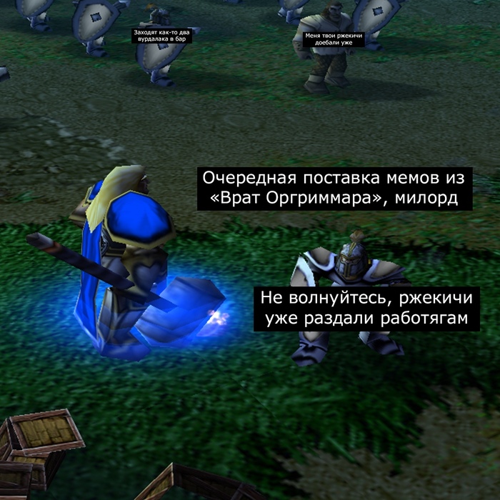 «А это еще что? Возможно, принц Артас вернется к нам сегодня! Живее, парни! Возможно, сегодня мы покинем эту проклятую землю! О, славный Стальгорн, как я скучал по тебе!»