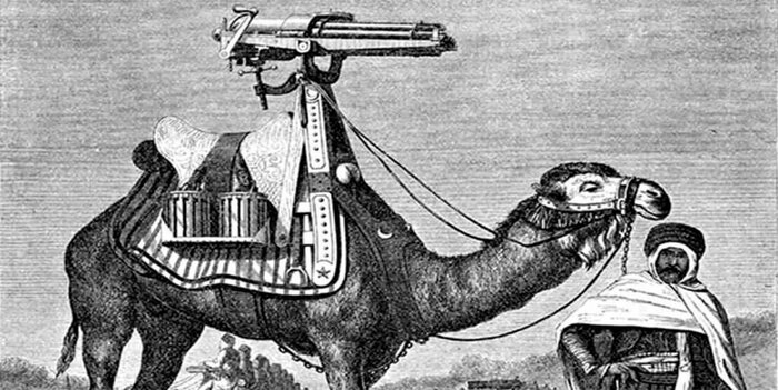 Однако несмотря на явно нереализуемое предложение американской «наспинной» пушки, сама идея использования живого существа в качестве платформы для размещения мощного оружия, оказалась на такой уж комедийной. На приложенных к статье фото показаны несколько фото таких «живых платформ» в виде слона, верблюда и даже человека.