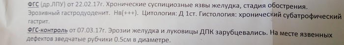 В 2016 году повторилось тоже самое: поднимаю на даче кирпич с пола и падаю от боли в пояснице, которая спускается в ногу: болит меньше, но ходить не могу и в туалет ползком... Диагноз терапевта: люмбалгия. Боли в ноге начинаются и продолжаются после приема пищи: соленого, жирного, горького... Терапевт, утверждающий, что желудок с ногой никак не связан, после домагательств в 2017 отправляет на гастроскопию. ФГС: 3 язвы по 7мм в желудке. Когда делают биопсию: чувствую неприятные ощущения в подвздошной области, в районе печени, там где у меня никогда ничего не болело. Лечения в стационаре помогает: