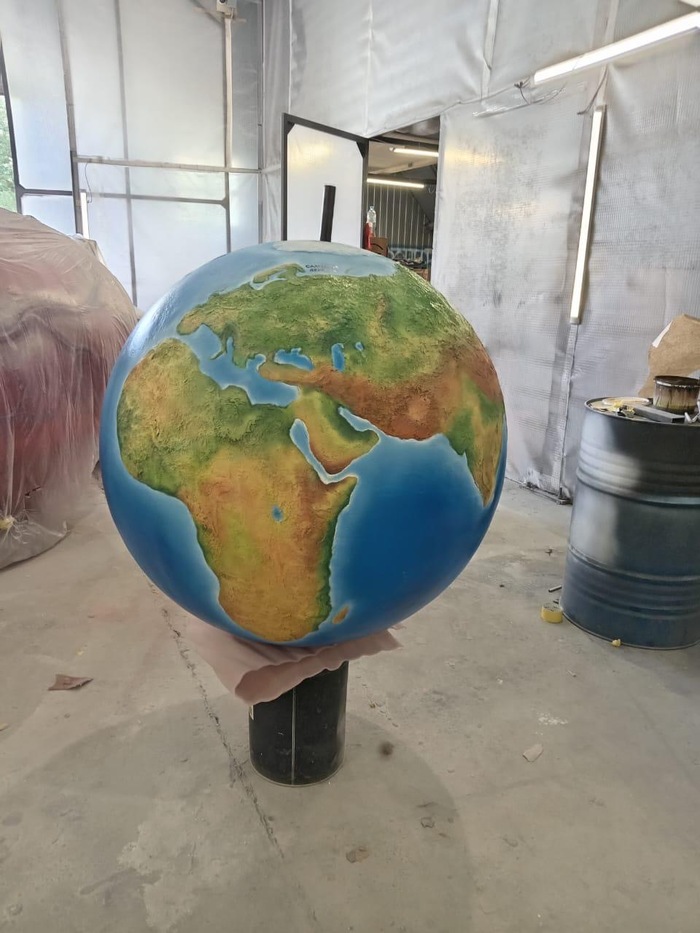 Как из названия понятно, у нас заказали глобус. Глобус на тот момент в портфолио у нас уже был. Большой, 4 метра высотой и 2,5 метра в диаметре. Но статический. Вот он: