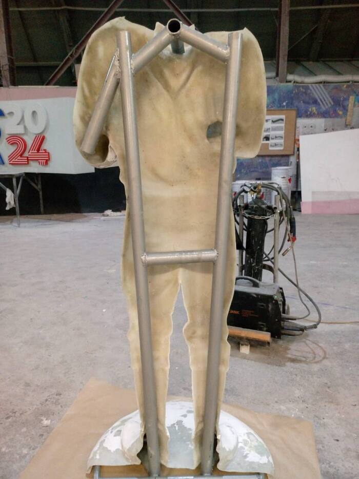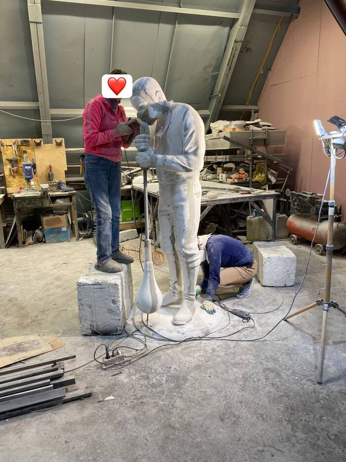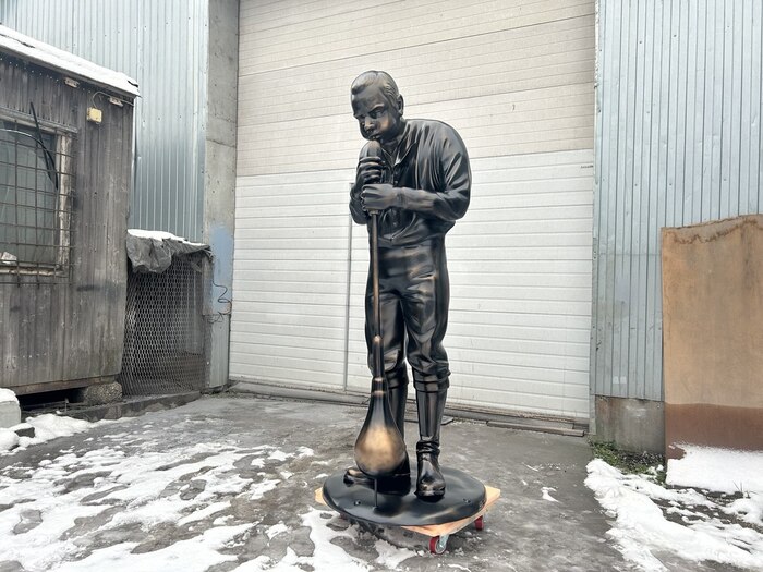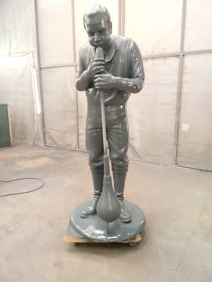 Так как скульптура уличная, мы ее должны сделать из стеклопластика с покраской под бронзу. Почему не саму бронзу? Бронза в 4-5 раз дороже, поэтому сейчас уже многие скульптуры делаются из него, потому что украшать города и поселения всем хочется, а бюджеты не позволяют это сделать из бронзы.