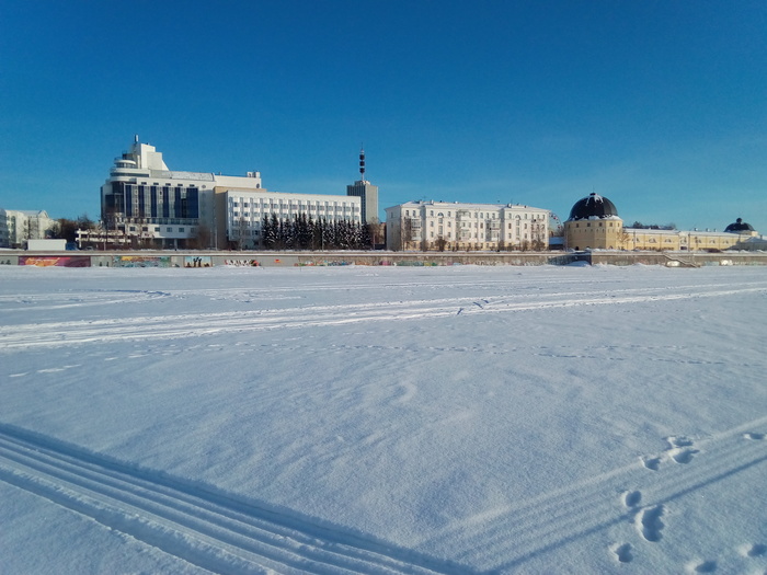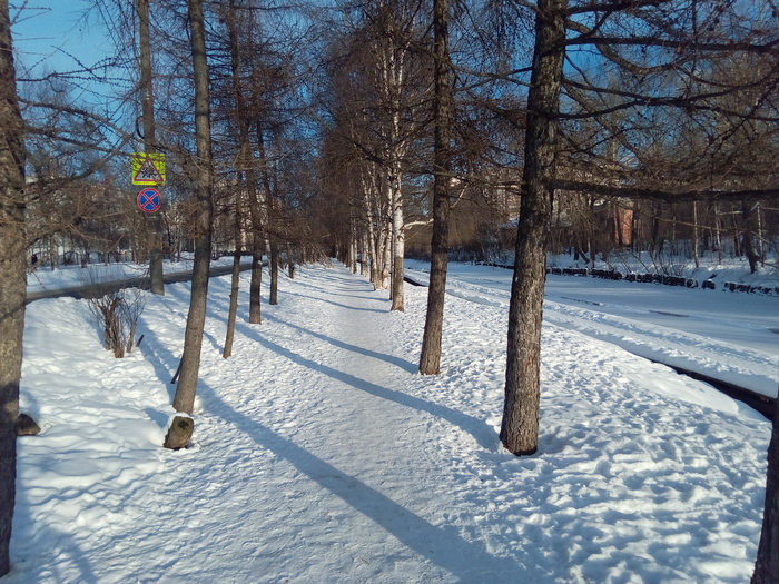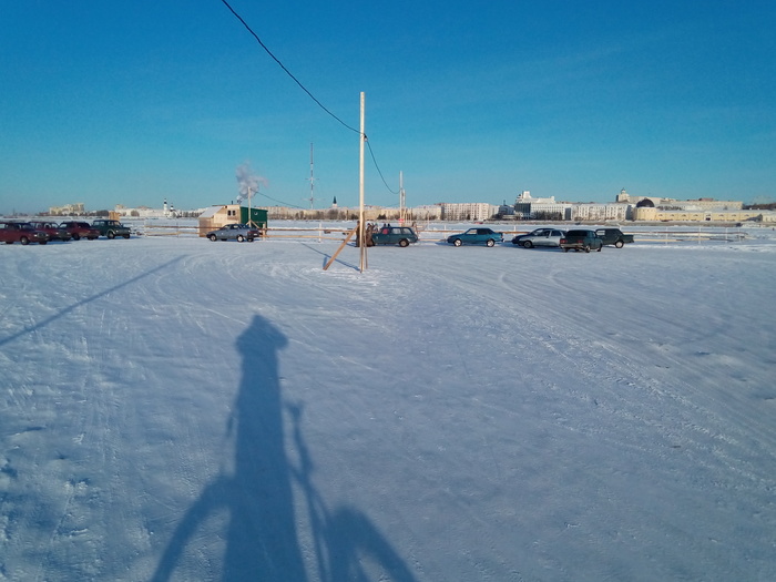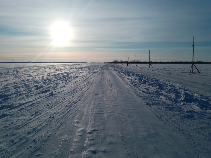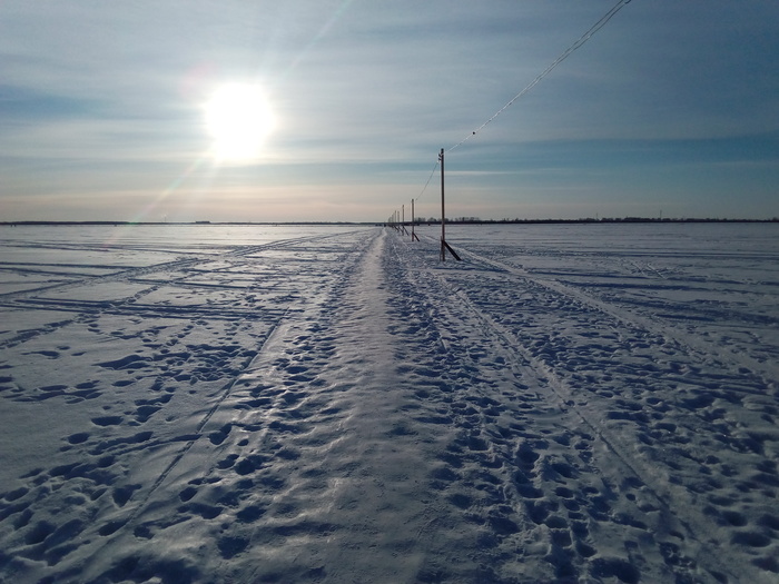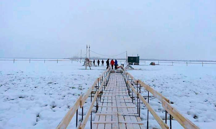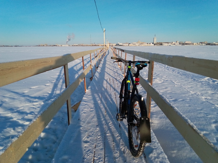 У берегов это деревянные мостки с перилами, а дальше просто тропинка по намороженному льду с хорошо утоптанным снегом. Однако, если наступить мимо тропинки - в след моментально просачивается вода: