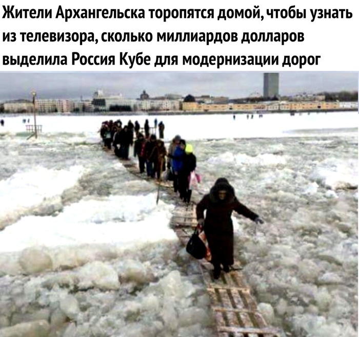 На этом острове живут архангелогородцы, по этому переправа действует круглый год: летом это паром, в межсезонье, когда лёд на реке уже есть, но ходить по нему пока нельзя - буксир, ну а зимой вот такая интересная переправа ☺️