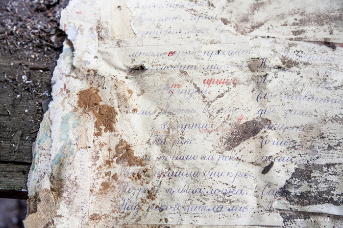 Следы красных чернил говорят о том, что тетрадка была ученической.