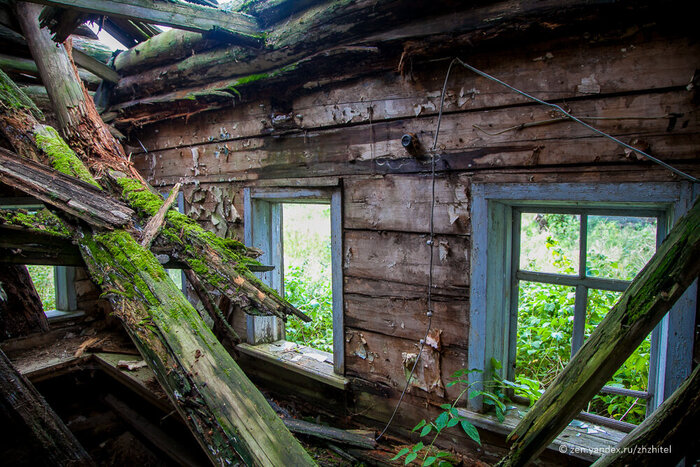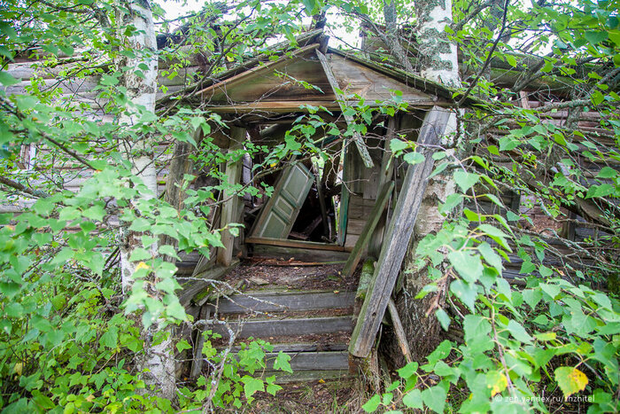 В пару домов мы заглянули, стараясь нигде не провалиться. Доски прогнили. В избе стоит печь, в нижней части обшитая досками. Печи были глинобитными.