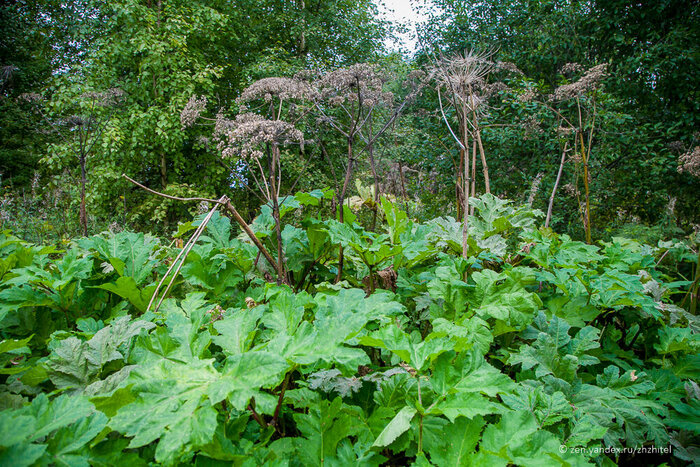Дальше пришлось пробираться через заросли крапивы, местами натыкаясь на борщевик. Эта зараза добралась и сюда, отвоевывая необрабатываемые участки земли и поглощая заброшенные деревни.