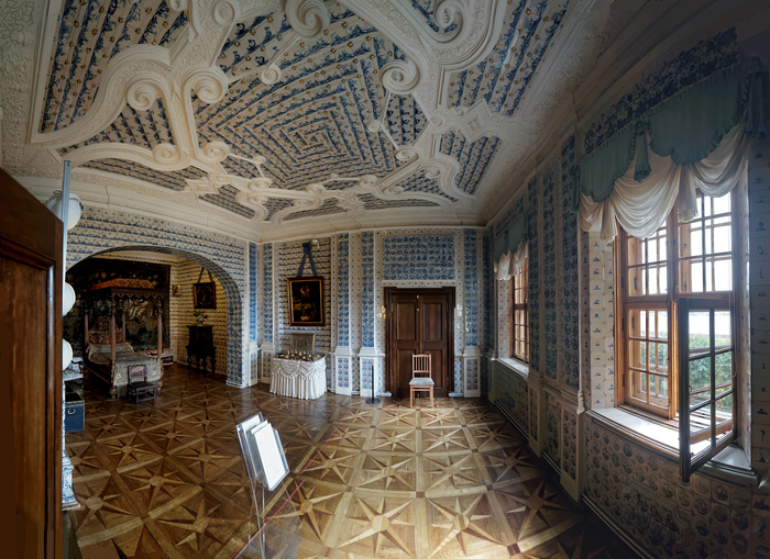 Даже в Голландии нет помещений с кафельным потолком. Пол, так и быть, сделали деревянный, но только потому, что по кафелю ходить холодно. Это присказка, чтобы непосвященные примерно представили как там все выглядит. А сенсация в том, что в ходе планового ремонта кладовки, расположенной в подвальной части дворца, была обнаружена замурованная комната, отделка которой поставила всех исследователей в тупик.