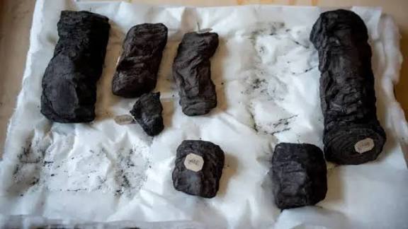 Вот в таком виде древние папирусы нашли учёные — просто куски бумажного праха.