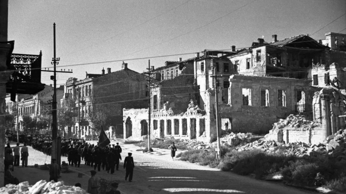Но открывшаяся картина была страшной: город лежал в руинах, к моменту освобождения в нём оставалось всего около трёх тысяч жителей из проживавших накануне войны ста девяти тысяч…