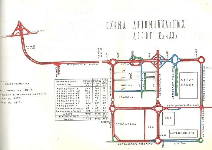 Эта схема автомобильных дорог «КАМАЗа» отражает ситуацию на 1 января 1974 года.