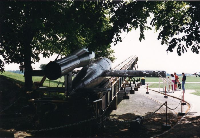 Первое подобное боевое применение пара зафиксировано в катапульте, разгонявшей "Фау-1" до начальной скорости около 250 км/ч за 1 секунду. Катапульта представляла собой массивную стальную конструкцию длиной 49 м (длина пути разгона 45м) и монтировалась из 9-и секций. Наклон катапульты к горизонту — 6°. На верхней стороне находились направляющие, по которым двигался снаряд при разгоне. Внутри катапульты по всей её длине проходила труба диаметром 292 мм, выполнявшая роль цилиндра парового двигателя. В трубе свободно перемещался поршень, который перед стартом сцеплялся с бугелем, находившимся на нижней части фюзеляжа снаряда. Поршень приводился в движение давлением (57 бар) парогазовой смеси, подававшейся в цилиндр из специального реактора, в котором происходило разложение концентрированной перекиси водорода под воздействием перманганата калия. Передний конец цилиндра был открыт и после схода снаряда с катапульты поршень вылетал из цилиндра и уже в полёте отцеплялся от снаряда. Первое боевое применение – июнь 1944 года.