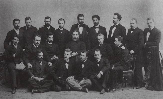 Айвазовский посещает пейзажную мастерскую Академии художеств. Куинджи стоит третий слева. (1896—1897)