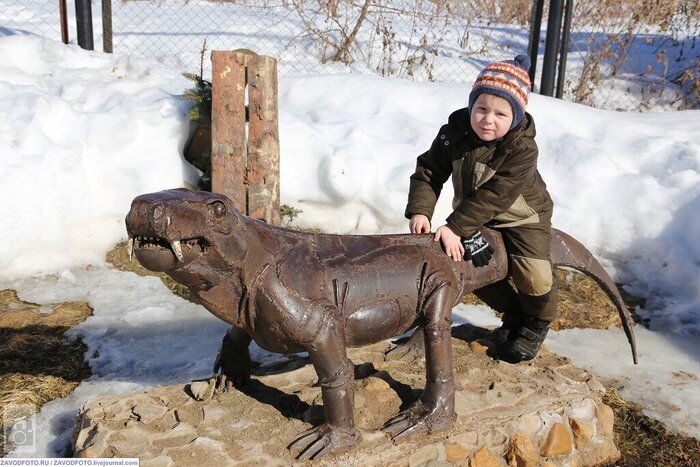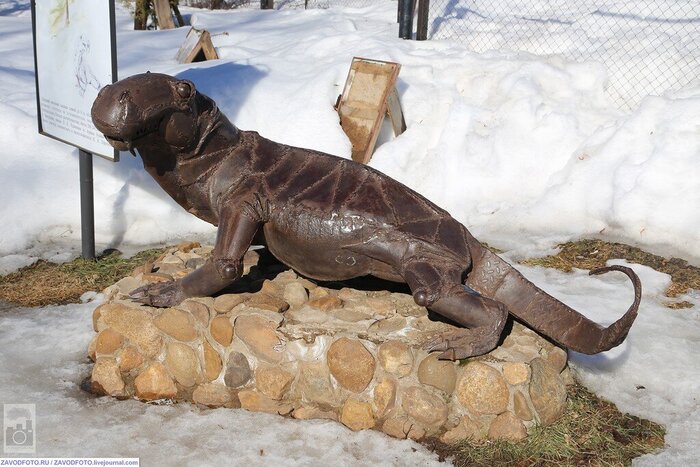 Как видим, свободных мест практически не бывает. Детвора каждого пытается оседлать. Это Биармозух. Тоже хищник, был длиной до 4,5 м. Обитал 250 млн. лет назад в Приуралье.