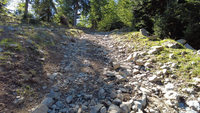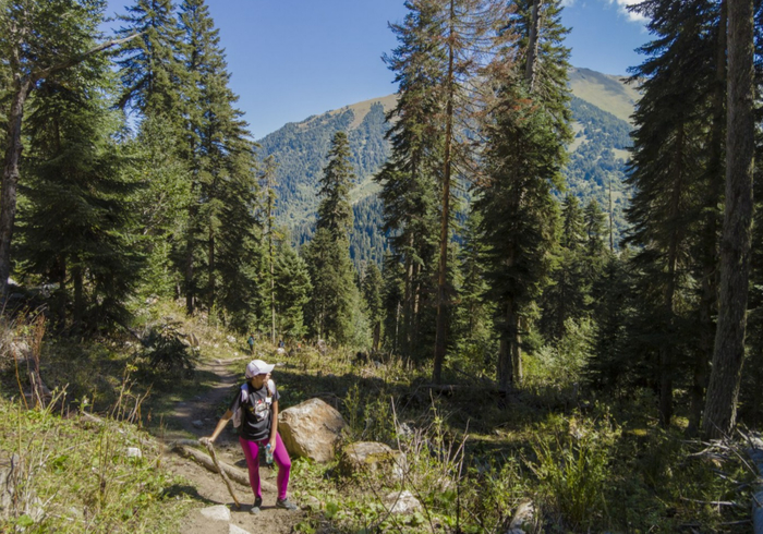 На момент нашего старта мы даже не догадывались, что идём не по экотропе. Сомнения закрались минут через пятнадцать, когда дорога в гору оказалась просто усеяна булыжниками. Как-то не очень похоже на экотропу. Иногда путь сменялся грязью и какой-то глиной. Единственное преимущество нашей дороги — это тень. С учётом палящего солнца в лесу было реально комфортно.