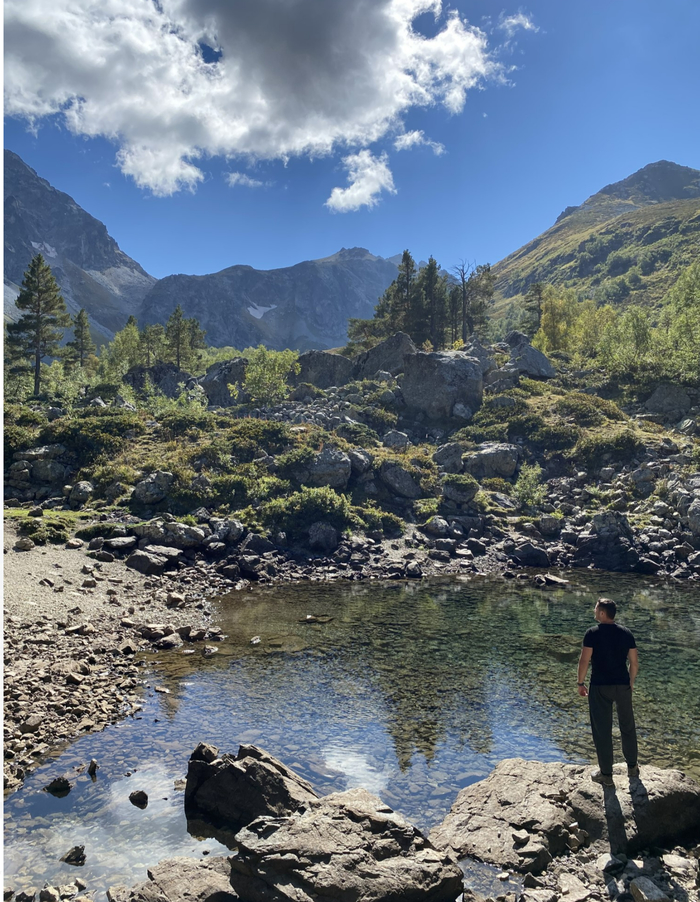 Во-первых, тут просто красиво. Во-вторых, тут нет ни души: вокруг только горы, ветер, солнце, озеро, деревья и голубое небо. К сожалению, на фото это не передаётся так, как в жизни, но озеро не просто прозрачное и чистое — его цвет какой-то то ли лиловый, то ли пурпурный. Я такого никогда не видел. Если вы знаете, почему озеро переливается такими цветами — напишите об этом в комментариях.