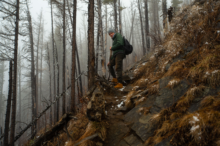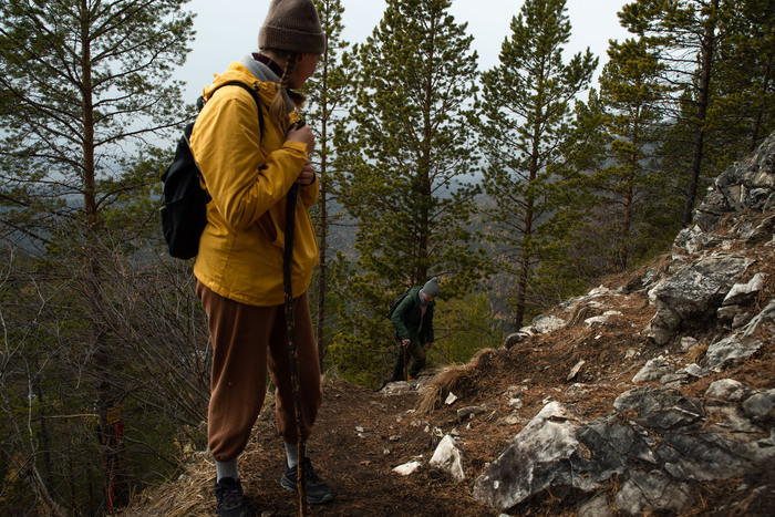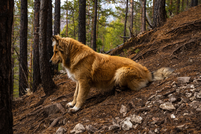 Собакен увязался с нами, отнимал палки и делил трапезы. Спасибо рыжему за приятную компанию и неуемную энергию.