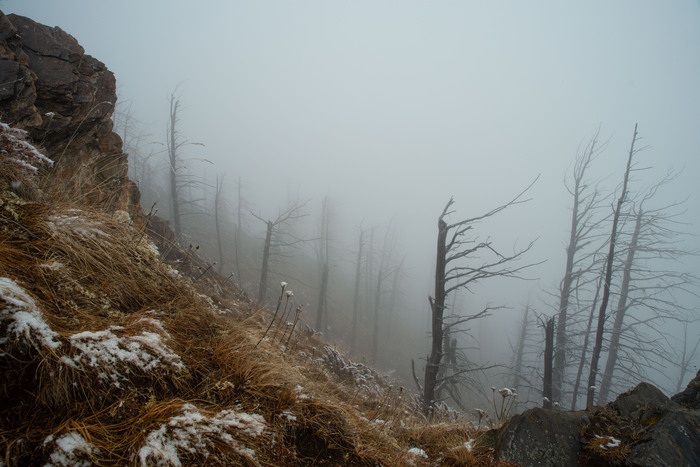 Поездка в горы часто оборачивается лотереей. И вчерашний день не стал исключением. Погода менялась как по щелчку пальцев: от полного штиля и солнца до густого снегопада и тумана.