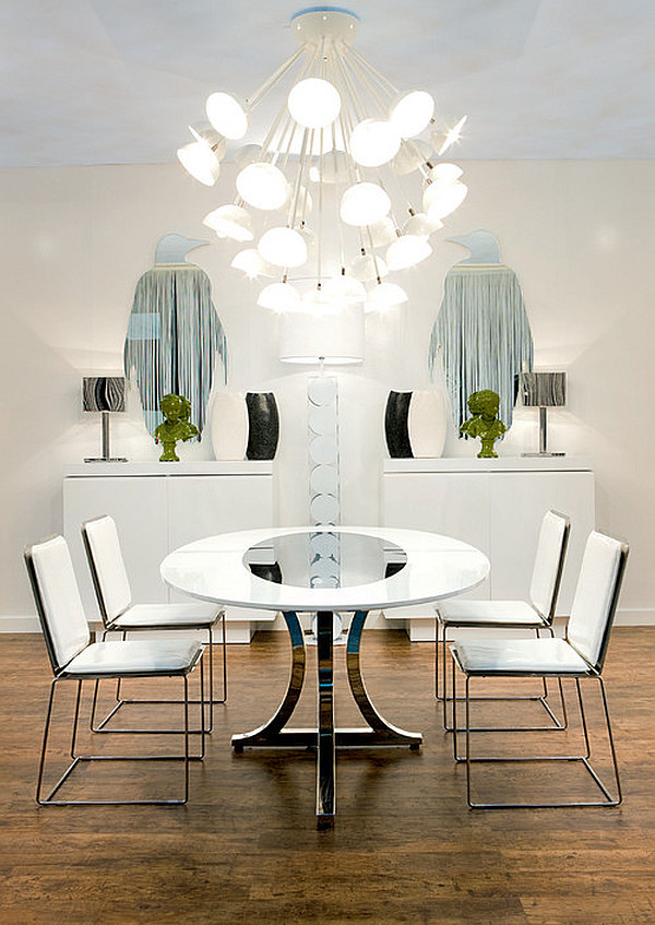 Символом стиля стало восходящее солнце, стилизованное изображение которого можно отыскать во многих интерьерах.