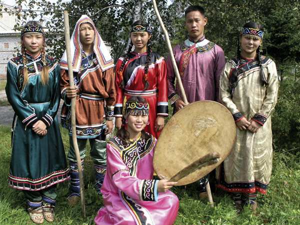 Современные нивхи в аутентичных костюмах.