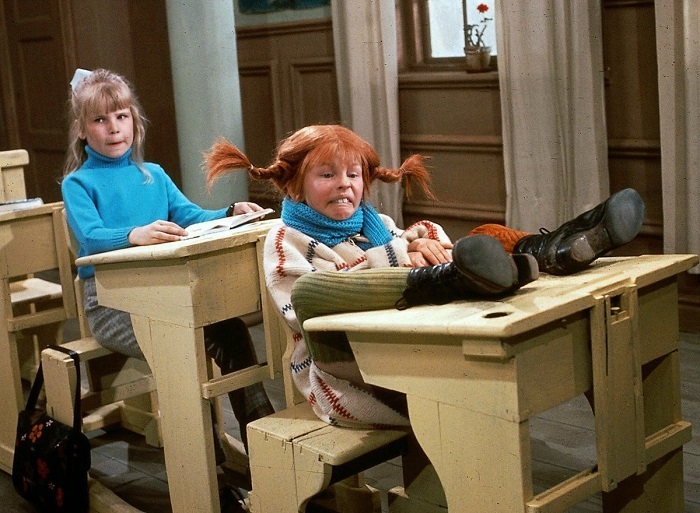 Как и Карлсон, она постоянно несёт околесицу, сочиняя небылицы на ходу и подстраивая под себя реальность (как с лимонадным деревом). Только Карлсон эгоистичен, а Пеппи – потрясающе добродушна и альтруистична. Но точно так же не понимает, зачем надо жить по человеческим правилам. Например, ходить в школу.