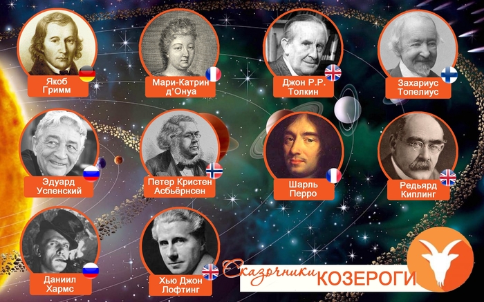 Итоги исследования превзошли наши ожидания и выявили серьезную закономерность у трех знаков зодиака – Львов, Водолеев, Козерогов – явно наибольшее представительство известных и узнаваемых сочинителей и собирателей сказок. А вот Александр Сергеевич Пушкин оказался в компании с писателями, за исключением Александра Мелентьевича Волкова (серия сказок об Изумрудном городе), малоизвестных российским читателям, как впрочем и автор «Маленького принца» Экзюпери. Впрочем, как уверены авторы исследования, эти писатели это исключение, подтверждающие правило.