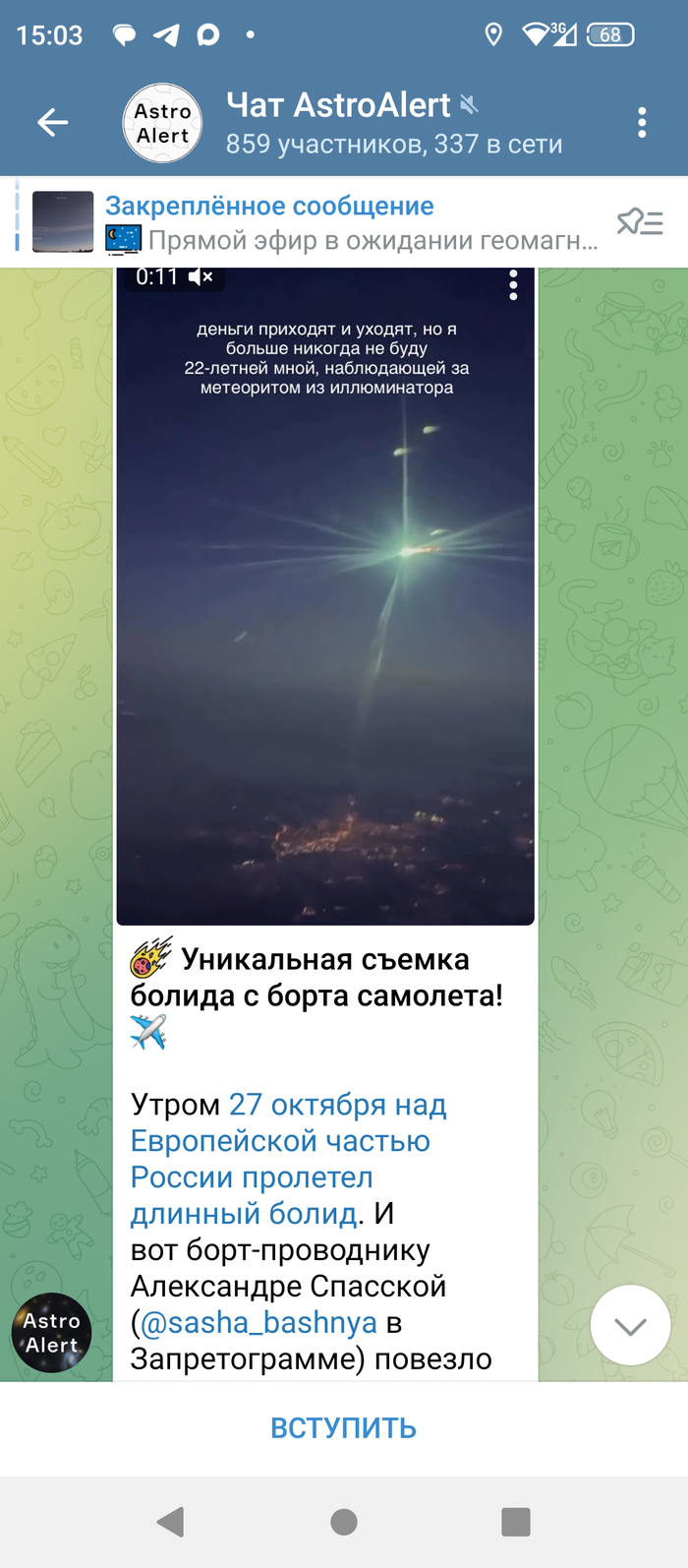 В чате тгканала AstroAlert активно обсуждали @astroalert