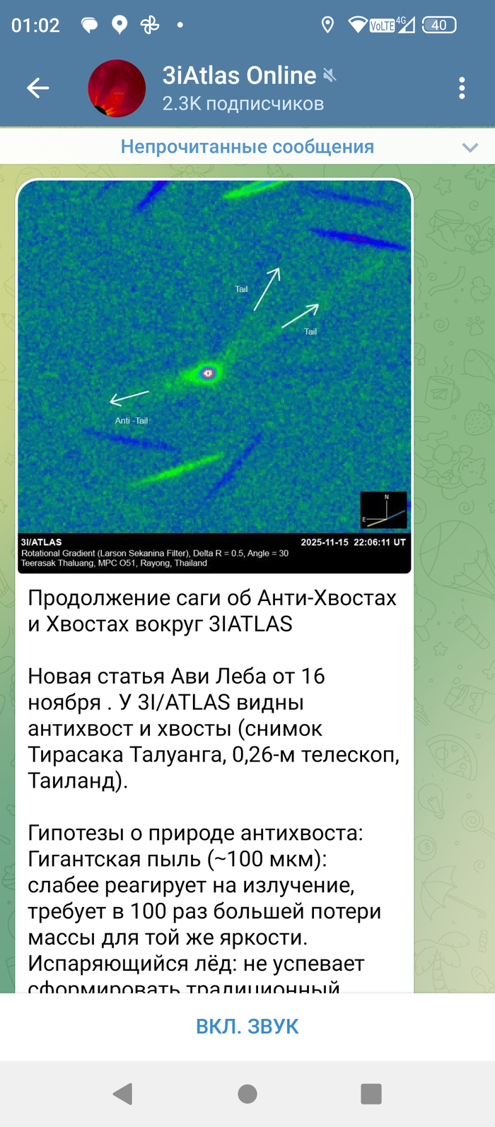 Начали появляться интересные фотографии третьего межзвёздного объекта, кометы 3I/ATLAS, которая уже прошла перигелий по другую сторону от Солнца. Сейчас угловое расстояние между ней и светилом увеличивается, а расстояние до неё от Земли, наоборот, сокращается. Поэтому, думаю, лучшие фотографии этой кометы ещё впереди. А вот моё видео о ней пока откладывается, но я всё ещё надеюсь опубликовать его в конце ноября или начале декабря.