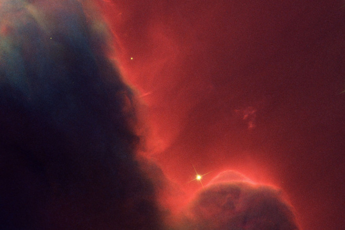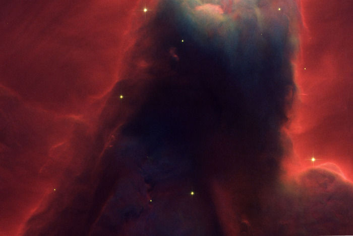 "Хаббл", к сожалению, не способен "смотреть" сквозь пыль, поэтому эти молодые и нестабильные звезды для нас невидимы — они скрываются за темной газопылевой завесой. Однако известно, что на протяжении миллионов лет эти юные светила неустанно разрушают туманность, благодаря которой они однажды и появились на свет.