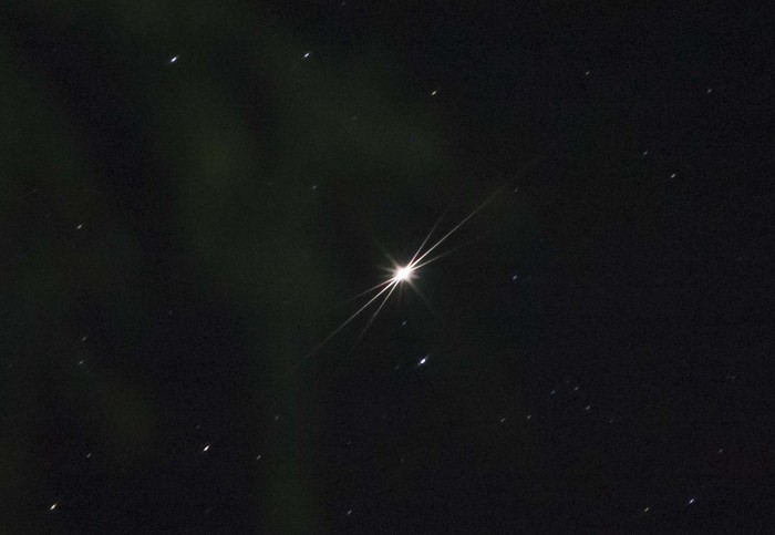 Лютая зернистость, пара спутников в кадре и фиолетовое свечение матрицы фотоаппарата, хотя в целом для одного-единственного снимка весьма неплохо.