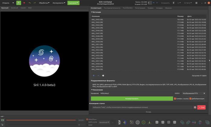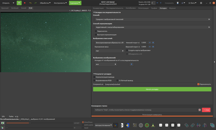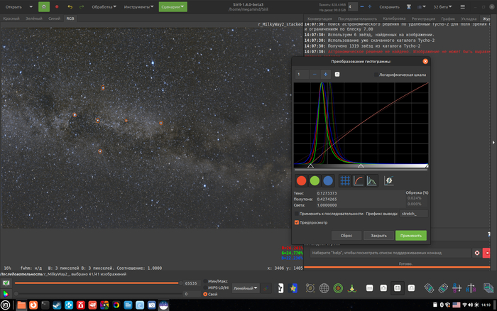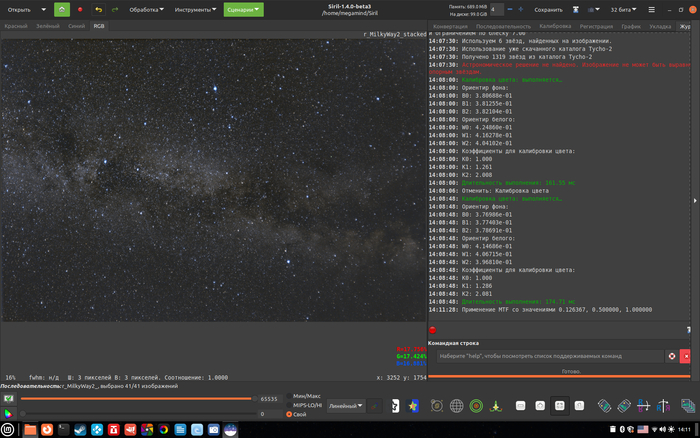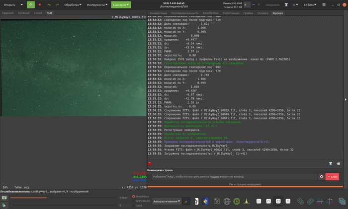 Для первичной обработки астрофотографий принято (оно и правильно) использовать специальный софт, к каковому относятся Siril, Deepsky stacker, IRIS и им подобные (если они имеются). Смысл этих программ в одном: объединить всю массу снятого материала в один роскошный снимок, глядя на который все охренеют и зааплодируют (а женщины, возможно, начнут сбрасывать одежду и смотреть на тебя влюбленными глазами. Или нет).