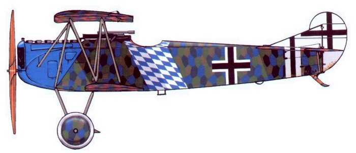 Германский истребитель Fokker D.VII 1918 г. Мощность мотора - 180 л.с. Скорость 200 км/ч, вооружение 2 пулемета. По совокупности боевых качеств некоторыми специалистами считается лучшим истребителем-бипланом Первой мировой войны. Изображение взято в открытом доступе.