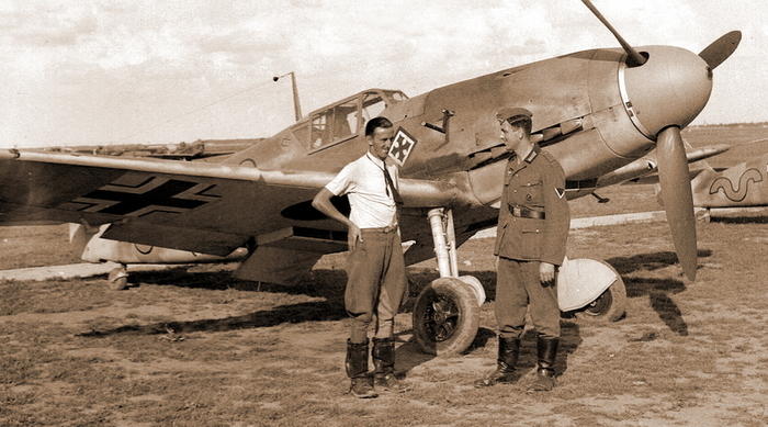 Герман Граф у истребителя Bf 109F-4, лето 1941 года. Группа III./JG 52 была единственной из частей люфтваффе, которая к началу войны против СССР успела полностью перевооружиться на эти новейшие машины