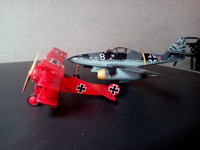 (На фото) Fokker Dr.I. и Me-262 - Прогрессивные германские истребители Первой и Второй Мировых войн. Разница между двумя этими машинами - 25 лет.